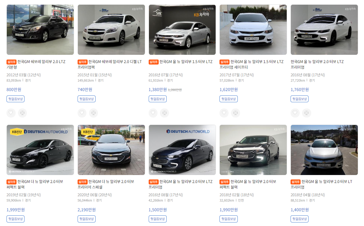 KB차차차 - 말리부 실시간 중고 시세