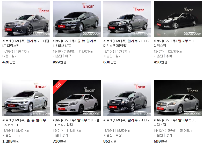 보시다시피 말리부 감가가 꽤 큰 모델입니다. 딜러들이 후려치는건지, 차량 특성이 그런건지 불분명하지만, 어쨌든 감가 쎄게 맞는 모델이라 중고로 많이들 구하십니다.