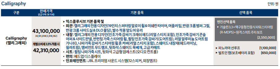 | 캘리그래피 | 42,310,000원 | 44,860,000원 | - |
