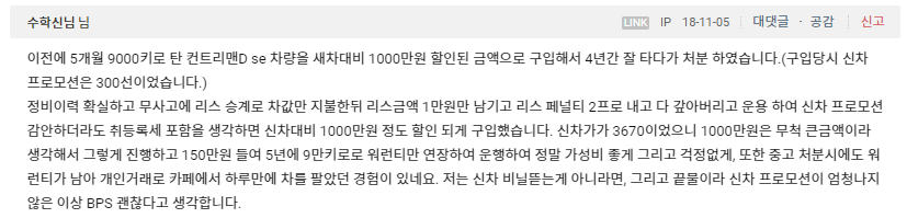 이외에 BMW 인증 중고차 구매 후기를 적나라하게 구매한 보배드림 글 하나를 공유하면서 글을 마치겠습니다.