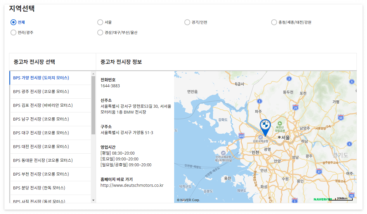 BMW 인증 중고차 지역 및 연락처