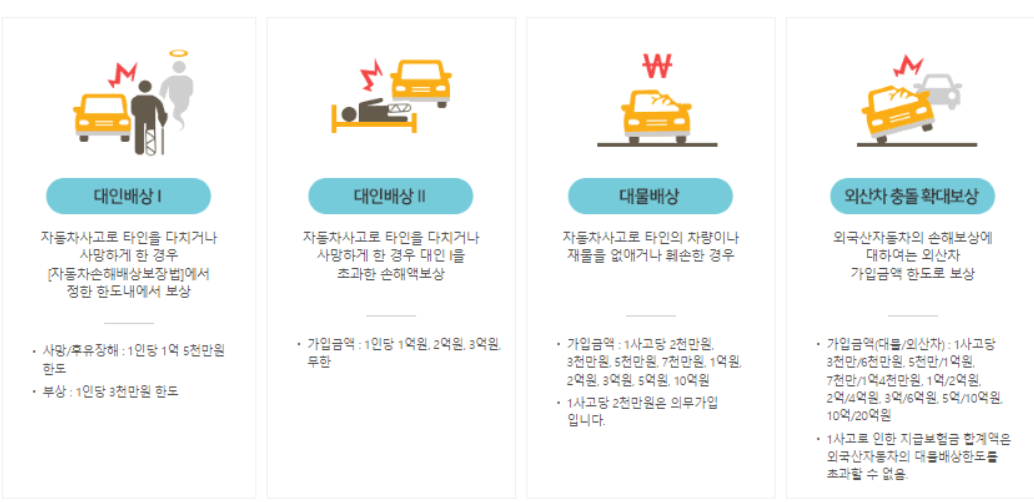 자동차사고로 타인을 다치거나 사망하게 한 경우 1인당 1억 5천만 원 한도로 보험료가 나옵니다. 부상의 경우에는 1인당 3천만 원까지 보험 보장이 됩니다.
