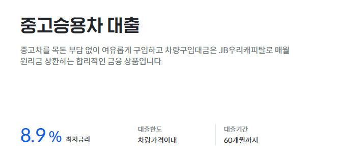 어느 대출이나 마찬가지이지만, 대출은 가능한 제 1금융권에서 받는게 좋고, 조건에 맞지 않아 캐피탈을 이용하시더라도 금리 및 한도, 대출상환 방식, 수수료에 대해 잘 알아보시고 가입하셔야 합니다.