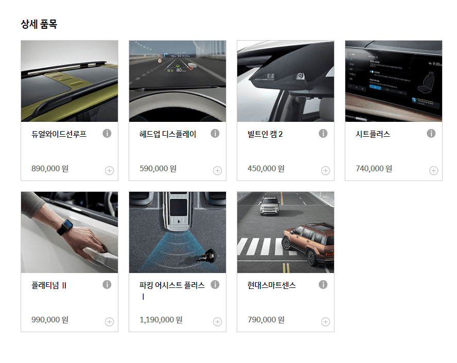 개인적으로는 빌트인 캠과 현대스마트센스 정도는 추가하는 것이 좋아보입니다.