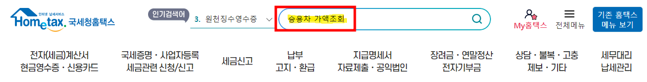 홈택스에서 승용차 가액 조회 찾기 어려운 분들은