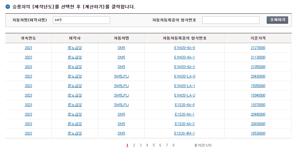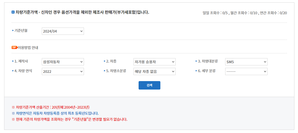 3) 자동차명 및 형식번호 검색 - 차량가액 조회