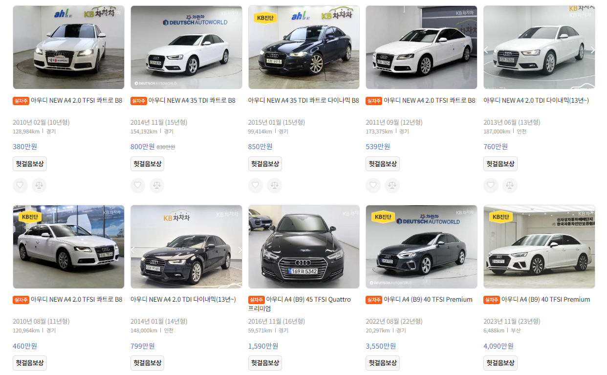 KB차차차 - 아우디 A4 실시간 매물