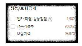 엔카 매물을 보시면 오른쪽에 성능기록 버튼이 있습니다.